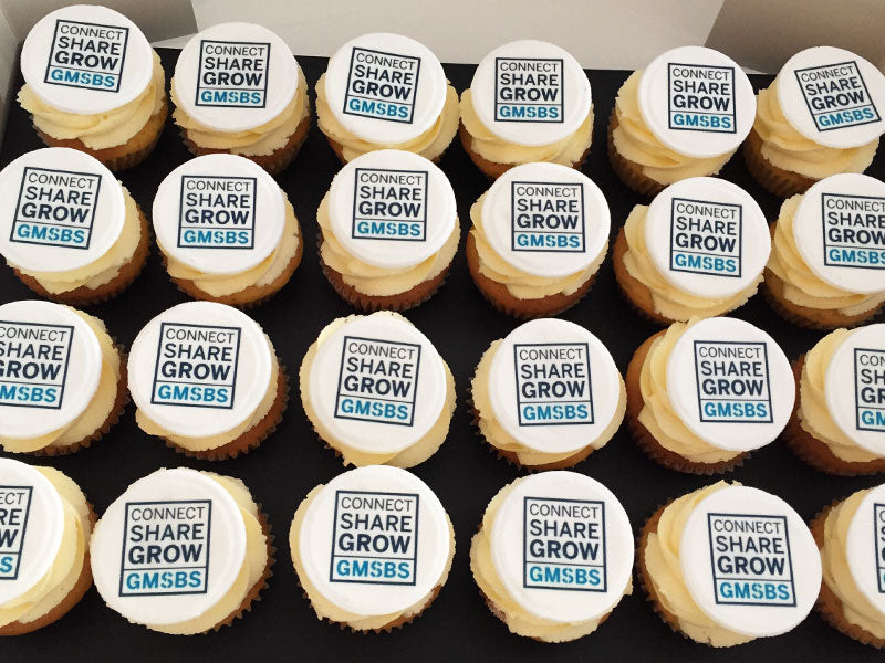 Add your company logo or any other image to half of the cupcakes in a box to send to your clients, staff or business partners.